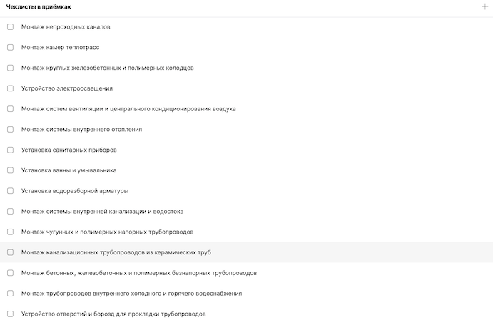 Чек-листы из перечня контролируемых операций по своду правил доступны в программе для использования при приемке конкретной работы на объекте